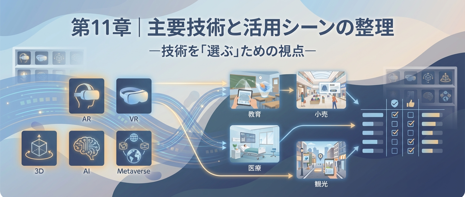 これらの技術は、単体で完結させる必要はありません。目的に応じて、3D×Web、VR×教育、AR×展示、AI×多言語など、組み合わせることで効果が大きくなるケースも多くあります。それぞれの技術が持つ強みを補完的に活用する発想が、設計の幅を広げます。