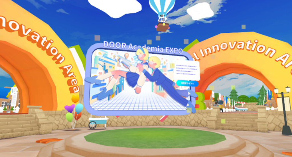 高校生を対象にした教育メタバースイベント「DOOR Academia EXPO」を紹介します。進学・進路選びに必要な情報を1つの仮想空間に集約し、大学ライブ相談会、進路相談、トークイベント、職業体験など多様なコンテンツを提供しています。