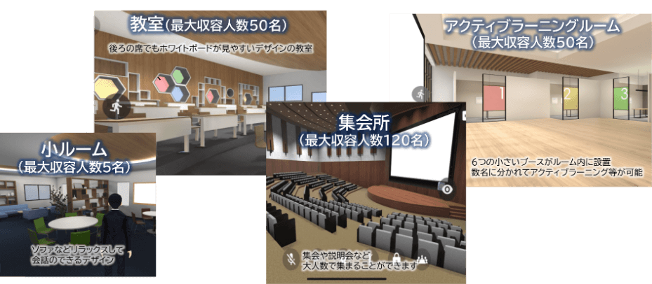 また、Roomiqでは空間の自由なデザインが可能で、教室やカウンセリングルームなど、実際の環境を再現した仮想空間を構築できます。