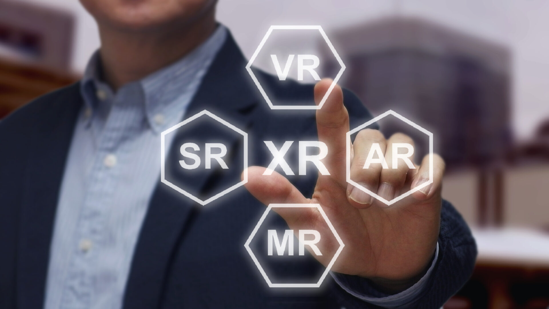XR(エックスアール)は「Extended Reality」の略称で、VR(仮想現実)・AR(拡張現実)・MR(複合現実)・SR(代替現実)といった技術の総称です。