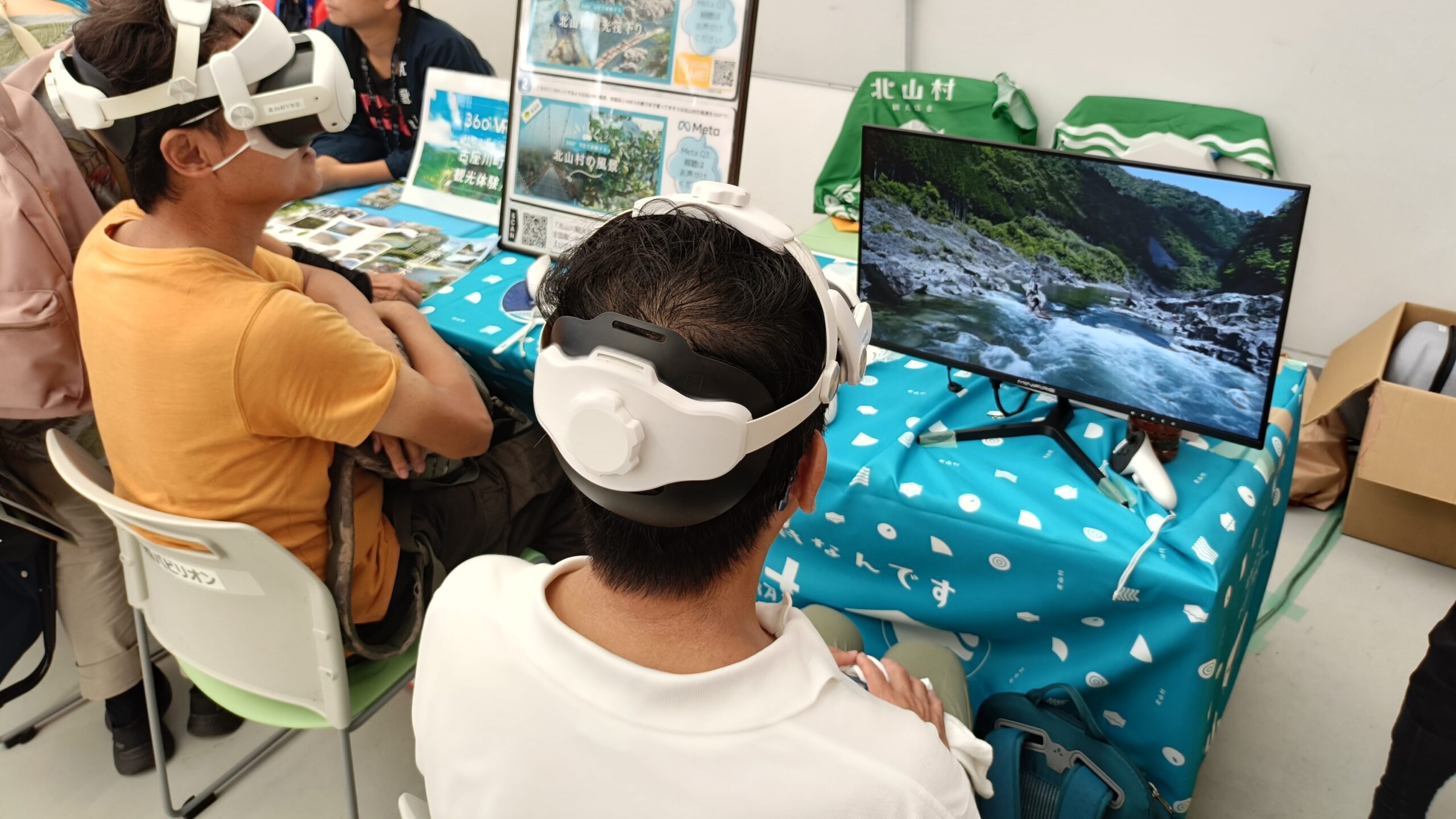 会場では、他の市町村がモニター展示を行っていない中、北山村のブースだけが映像を可視化しており、結果として列が最も長くなったのではないかと思います。