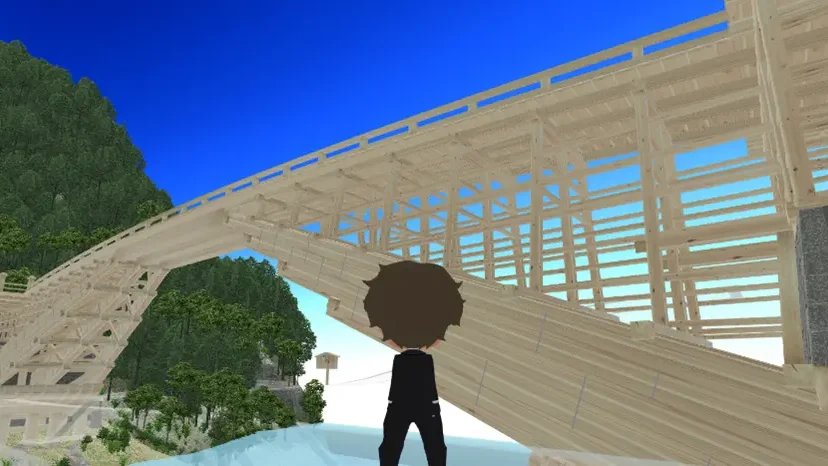 黒部市では、かつて存在した歴史的木橋「愛本刎橋」をメタバース上で復元しました。