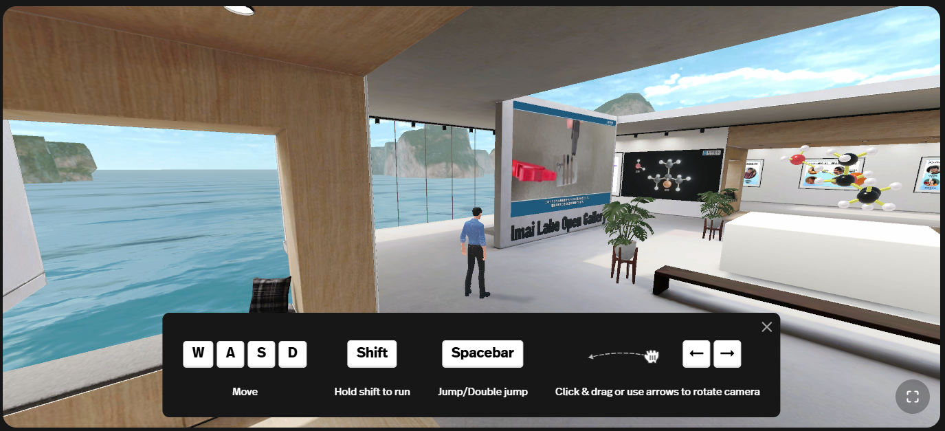 仮想空間内では、理工学部の研究テーマや設備、学生の取り組みを可視化。実際の研究室を模したエリアで、反応実験の様子や成果を分かりやすく紹介しています。従来の説明会やWebサイトでは伝えきれなかった「化学の面白さ」を、視覚的・体験的に発信することを目的としています。