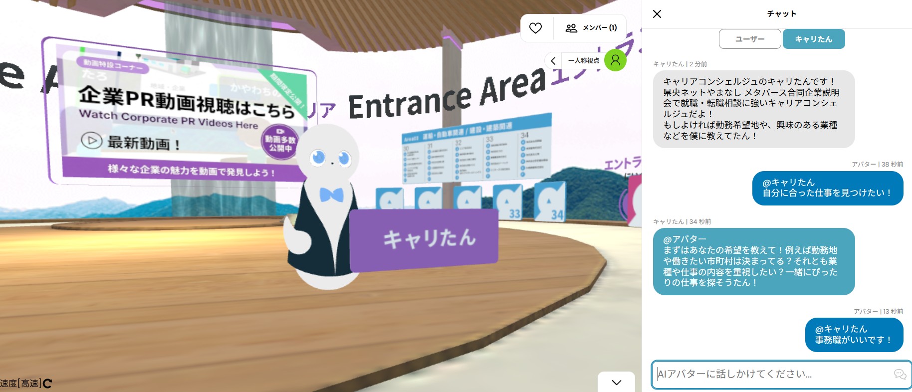 参加者アンケートでも「顔を出さなくていいので緊張せず企業と話せた」「聴き専アバターがありがたかった」という声があり、心理的ハードルを下げる仕掛けとして機能しました。